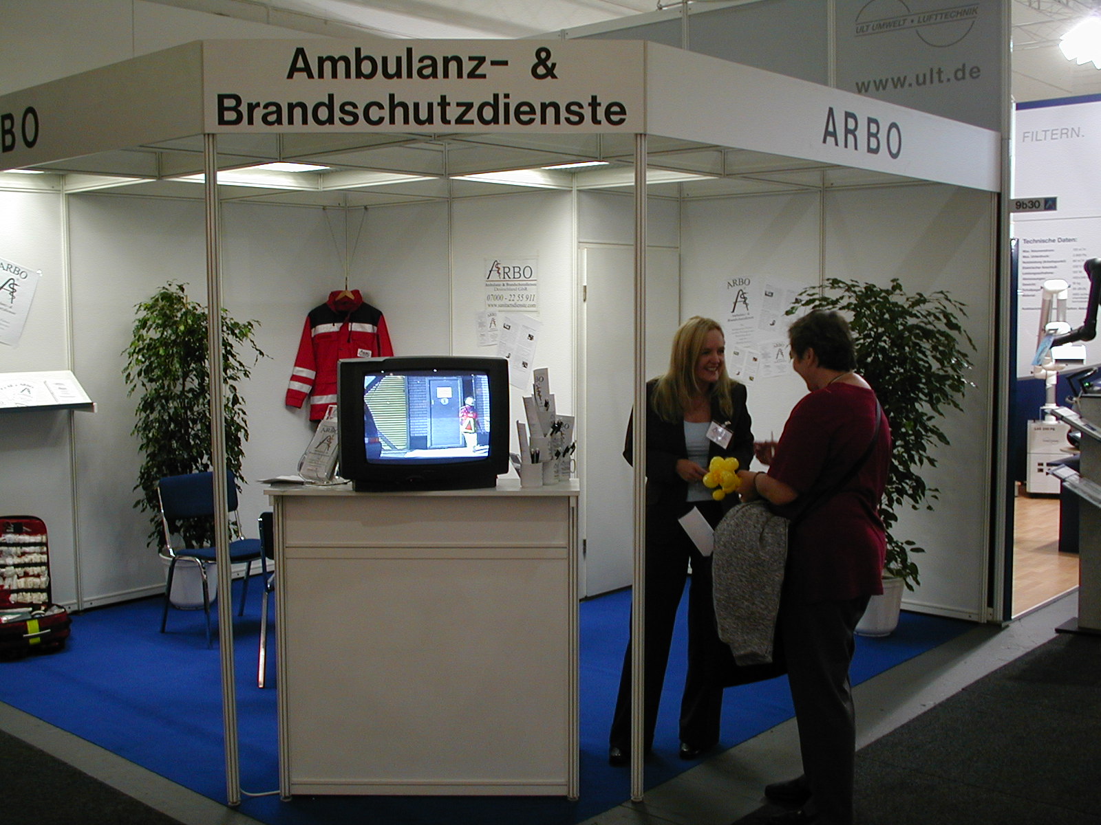 | Unser Messestand | Im Gespräch mit Dipl. Ing. R. Lehner vom Fachausschuss Erste-Hilfe des VGBG |